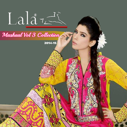 Just few hours ago Lala Textiles has updated its official Facebook page and dropped its quite familiar Mashaal by Lala Lawn Collection 2014-15 with luxury variety of embroideries and motifs work.